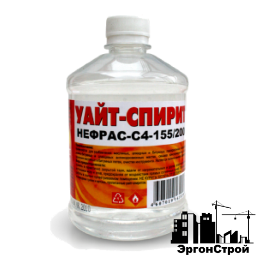 Уайт-спирит (Нефрас С4-155/200) прозрачная, горючая жидкость, получаемая путём перегонки или ректификации нефти, выкипающая в интервале температур 155-200 °С. В соответствии с классификацией нефтяных растворителей Уайт-спирит – это нефрас (нефтяной растворитель).
